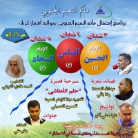 يبارك لكم مأتم النعيم الوسطي ذكرى مولد الإمام الحسين عليه السلام ويدعوكم للإحتفال المركزي بهذي المناسبه