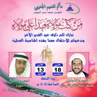 بمشاركـة الخطيب الحسيني الملا عـبـدالـحي آل قـمـبر الـقطـيفـي موعدكم مع مجلس ليلة العاشر من إعادة العشرة وذلك ليلة الاثنين القادمة مـأتـم الـنـعـيم الـوسـطي