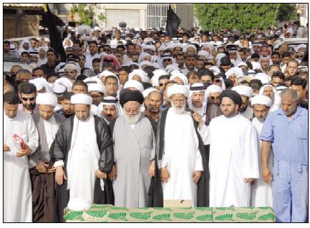 وصلى على جثمان الفقيد الشيخ أحمد العصفور الذي كان ملازماً معه في الخطابة في أجواء حزينة، وشوهد عدد كبير من النساء يسرن خلف الجنازة، ووري الجثمان الثرى في مقبرة النعيم.