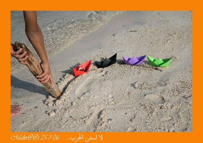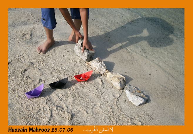 في الصباح الباكر تجمعت "صبية الماء" عند بحر الحيّ. كانوا يرون أن سفينة الحرب تسير على الماء واليابسة، وتحت الماء في آنٍ واحد.  قال أحد الصبية "نستطيع منع دخول سفن الحرب إلى البحر لو حرفنا مسارها عند الساحل هكذا"!  صبي آخر اقترح وضع حجارة صغيرة أمامها مثل جدار يفصل الساحل عن الماء. أحياناً تكون الجدران للسلام. سوف يقترح صبي آخر مثلهما لم يعرف الحرب، ولم تفجع أباه بحقدها فيه: عمل حفرة في طريق السفن. وقد تقترح صبيّة: قطع السفن بمقص الورق فلا تبدو حينها سفن حرب، وأخرى حبسها في علبة جوار الحلويات، وأخرى تزيّن بها سريريها الصغير، وأخرى تلوّنها.