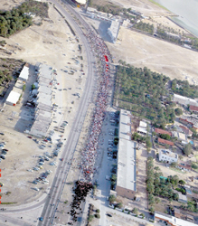 مصور صحيفة محلية أخرى صور المسيرة مقطوعة من المقدّمة والنهاية؛ لتُوحي بصرياً بالاستمرارية من الجهتين! فجاءت الصورة مناسبة لكلام العنوان: آلاف يتظاهرون أمس!.. الكاميرا عجزت عن أن تحويهم، وتلك عجزت أن تقترب لترى.