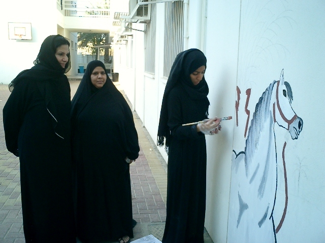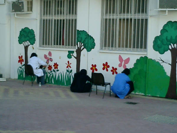 ترسيخاً لمبدأ الشراكة المجتمعية والتعاون بين المؤسسات المختلفة شاركت لجنة فتيات النعيم التابعة لمركز شباب النعيم الثقافي والرياضي في مشروع تجميل مدرسة سمية الإبتدائية للبنات وذلك بمشاركة مجموعة من الفنانات و الفنانيين المتطوعين.