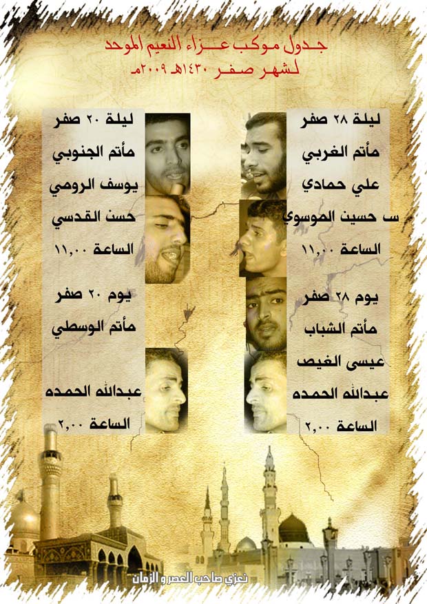 جدول موكب عزاء النعيم الموحد لشهر صفر 1430هـ - 2009 م