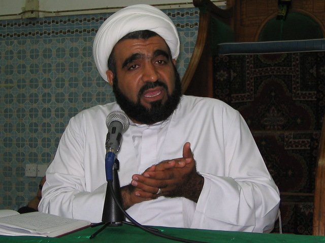 الشيخ محمد الخرسي في إحدى المحاضرات بمأتم النعيم الغربي