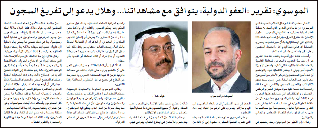 الموسوي: تقرير ( العفو الدولية ) يتوافق مع مشاهداتنا... وهلال يدعو إلى تفريغ السجون